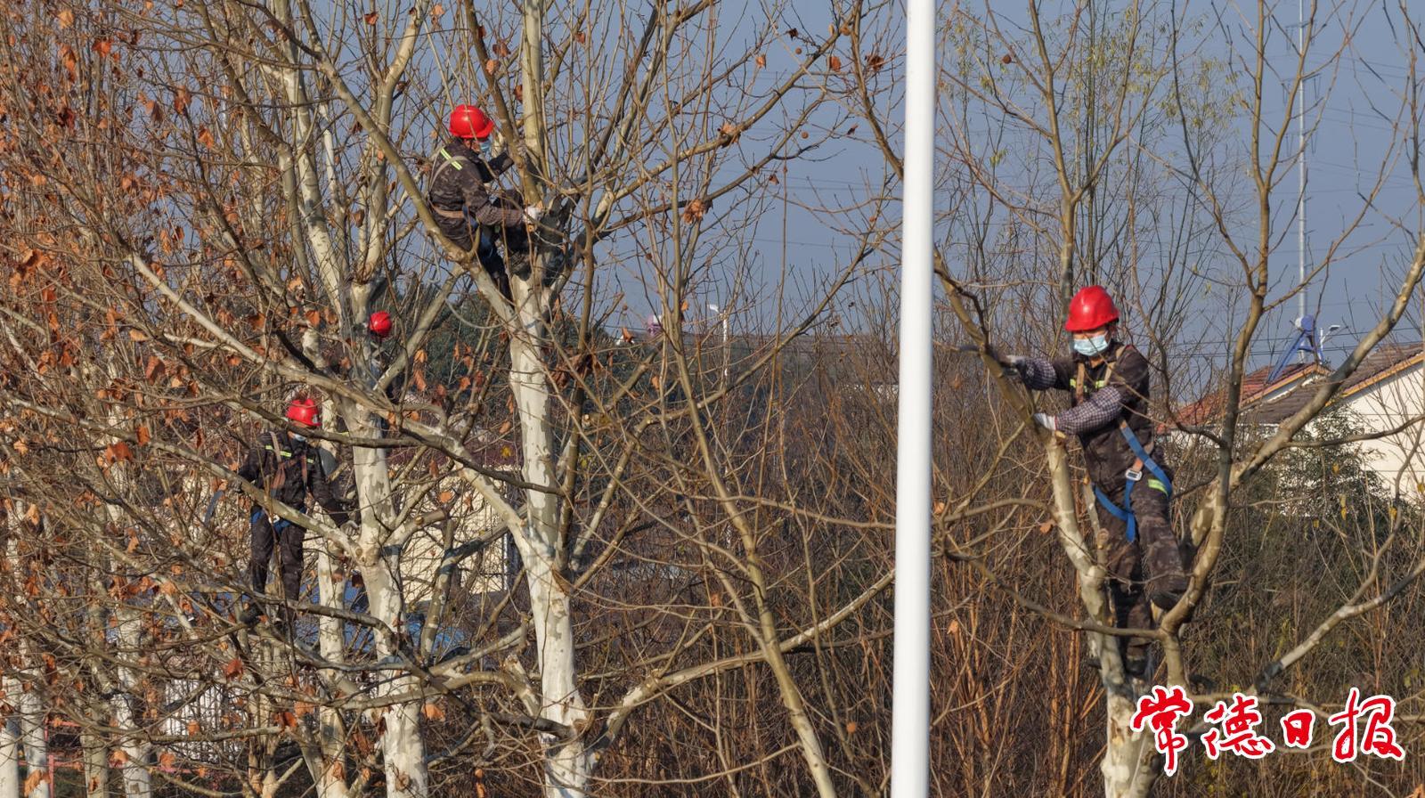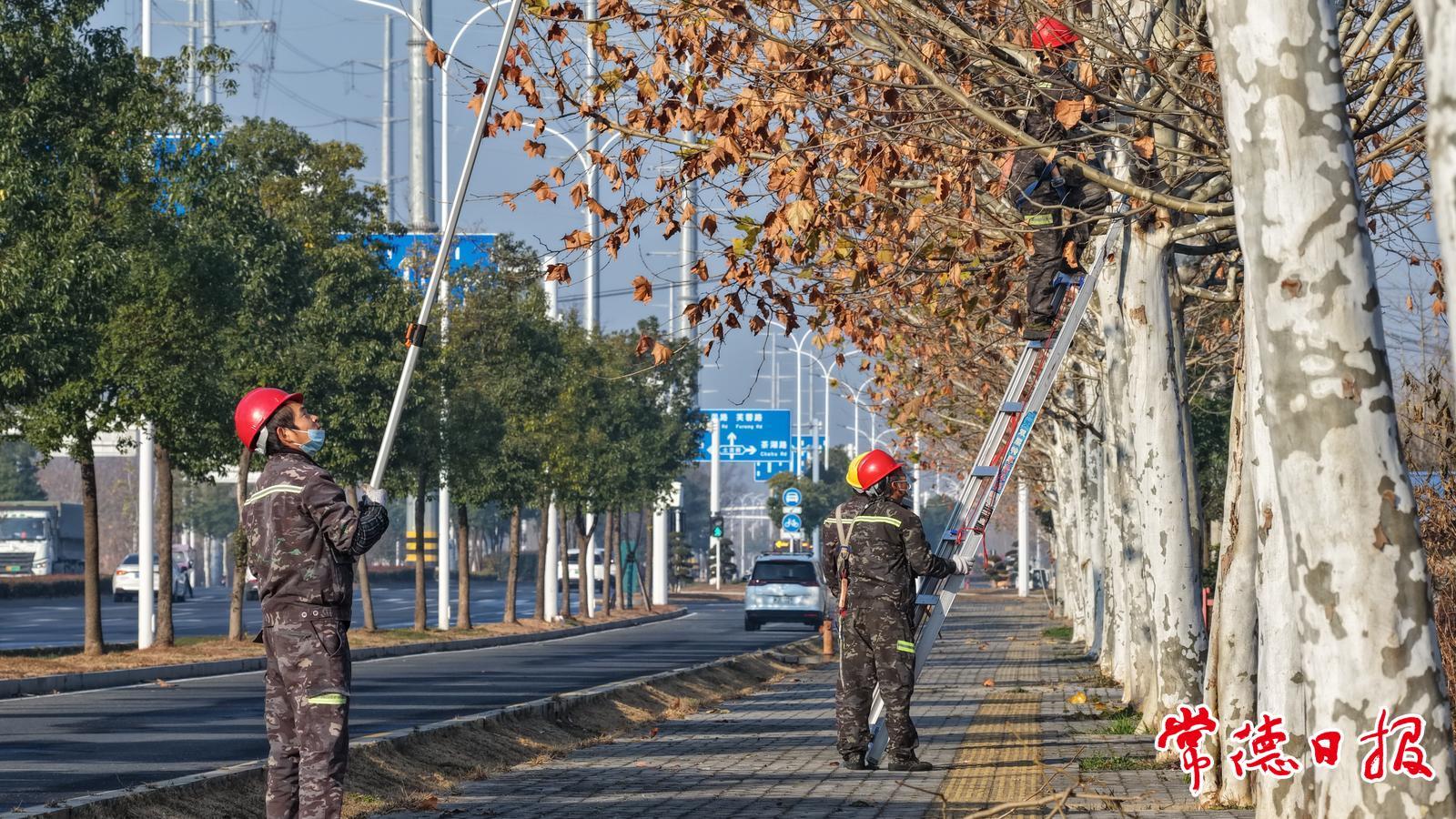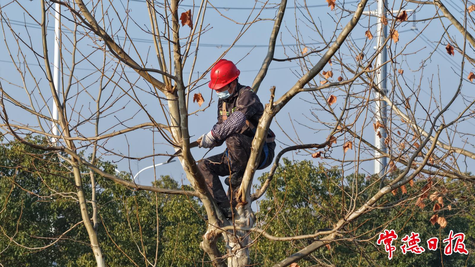 随着落叶乔木进入休眠期,近日,常德市园林绿化服务中心市绿地养护所全面启动冬季树木精细化修剪工作。行道树养护队员攀高疏枝,通过科学管护,优化树木形态,减少不必要的营养消耗,为来年健康生长奠定坚实基础。
