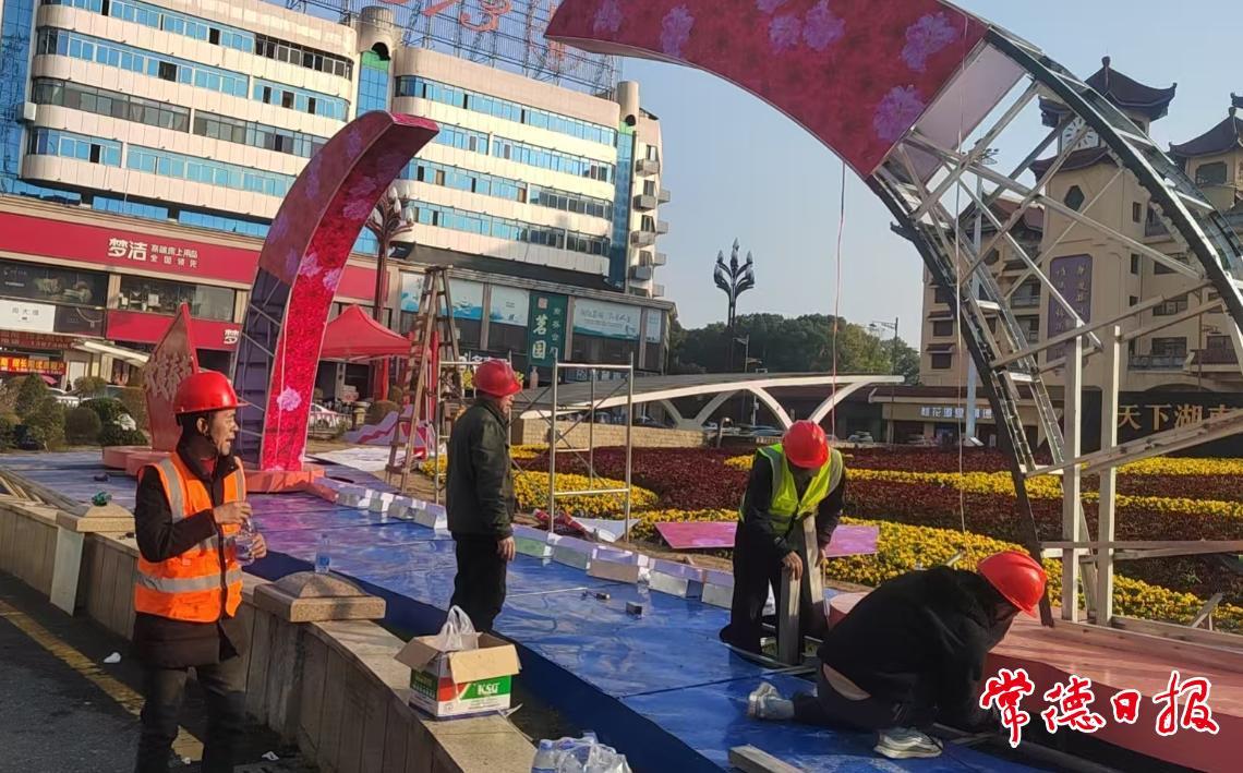 星夜筑景迎新春 直击常德春节氛围布设现场