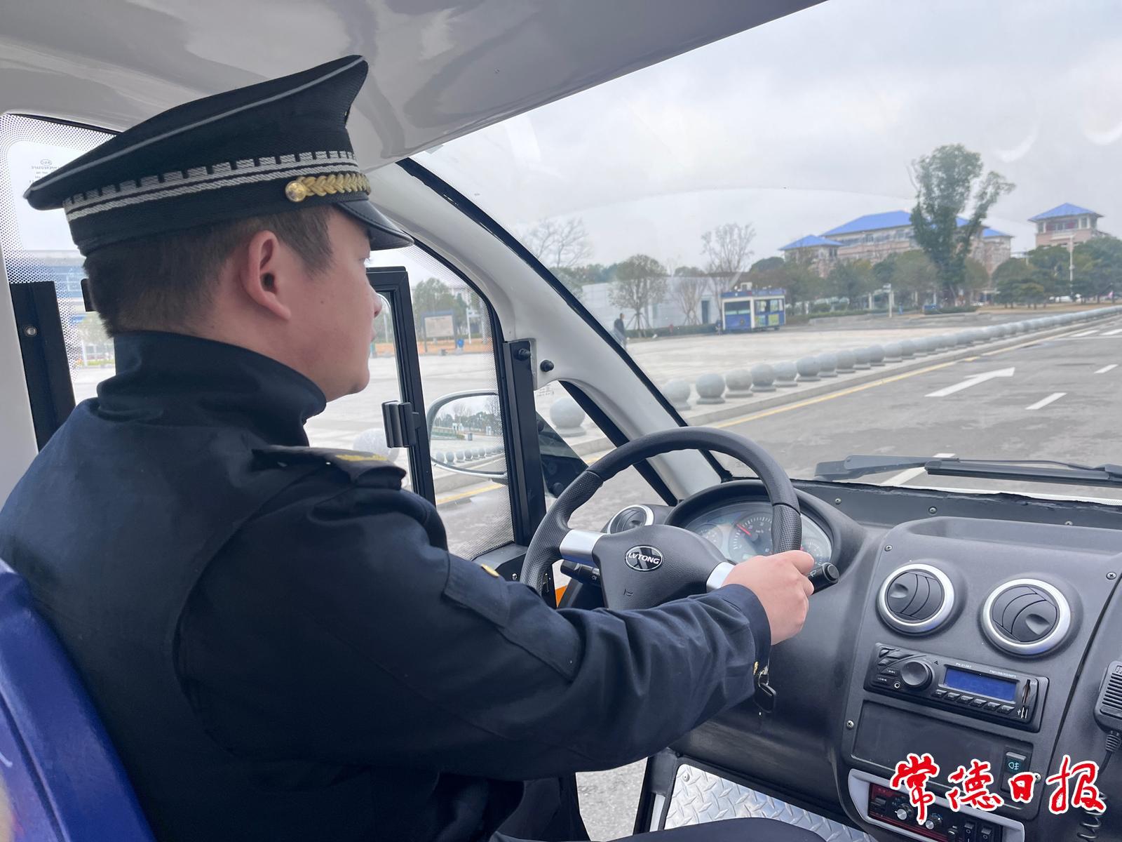 “师傅,广场内禁止喊客拉客,影响旅客出行安全,您去指定区域等候吧。”一大早,黄政驾驶着广场巡逻车,穿梭在广场入口处。刚巡逻没多久,不远处就传来了摩托车车主的喊客声,黄政立刻将巡逻车停在安全区域,快步走过去,语气温和却坚定地劝阻。经过耐心劝说,车主停止吆喝,并驶离现场。
