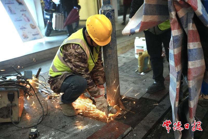 武陵区畔池街14基老旧路灯灯杆拆除更换