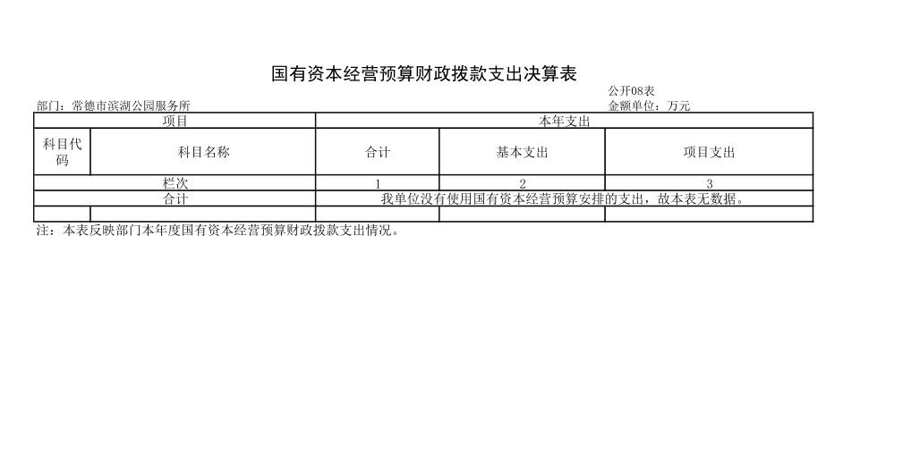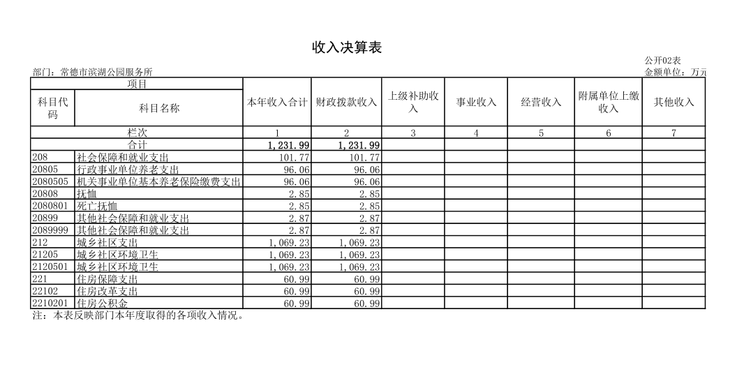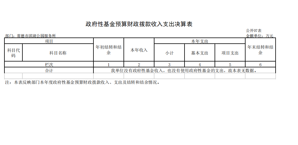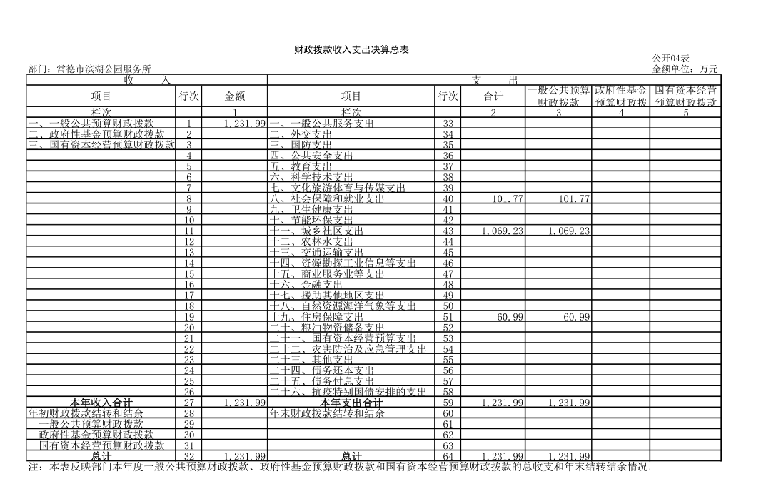 (二)决算单位构成。常德市滨湖公园服务所2024年部门决算汇总公开单位构成包括:本单位无所属预算单位,故纳入2024年部门决算编制范围的为常德市滨湖公园服务所单位本级。