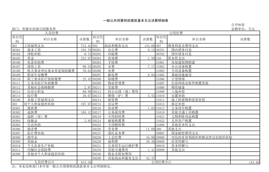 (一)基本支出情况:2024年财政部门预算基本支出经费共计1221.42万元,其中人员经费1077.82万元(含退休职工年底保留补贴146万元)、公用经费143.6万元(含老干经费支出29.20万元);2024年财政部门决算基本支出经费共计1056.99万元,其中人员经费913.39万元、公用经费143.6万元。及时准确的将全园职工工资及各种津贴补贴发放到位,将单位人员因公出国出境费、公务车购置及运行费、公务招待费这三项开支情况及时在“三公经费”公开栏中进行公示,单位预算、决算公开工作及时准确按要求开展,公开在主管局官网。